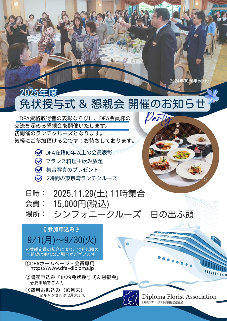 お申込みは【講座申込み】ページ『11/29免状授与式&懇親会』よりお願いいたします。