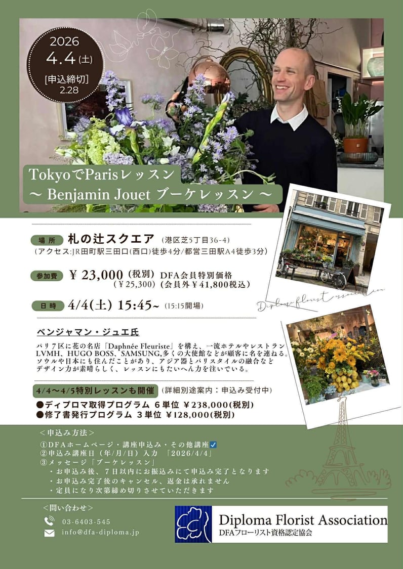 フランス人デザイナー Benjamin Jouet氏によるブーケレッスンを開催いたします。