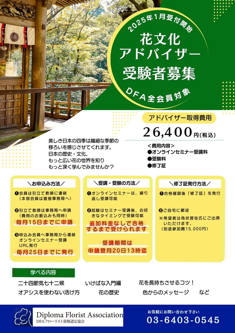 ●花文化アドバイザー受験者募集のお知らせ●