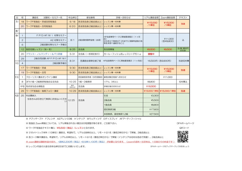 年間講座・試験一覧 前期